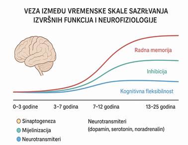 Slika 1 (generisana pomoću AI na osnovu podataka iz Vicki Anderson, Rani Jacobs, Peter J Anderson, Executive functions and the frontal lobes: A lifespan perspective, Taylor and Frances, 2008)